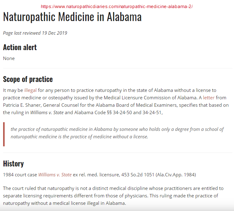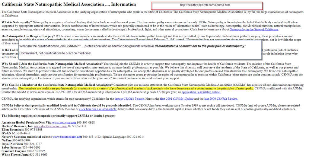 Anyway, a email from California state verified that The American Association of Naturopathic Physicians is the one and only legitimate authority as to licensing accredited naturopaths. A email to this organization confirms this when I asked:
